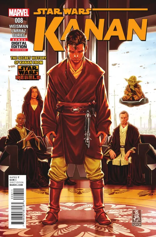 Kanan Jarrus—in STAR WARS REBELS, he's a cocky, sarcastic renegade fighting against the Galactic Empire alongside the rag-tag crew of the Ghost...but years before, at the height of the Clone Wars, he was known as Caleb Dume, Jedi Padawan under the instruction of Jedi Master Depa Billaba. Neither master nor apprentice ever suspected that the Clone Troopers they commanded would turn on them upon the issuing of Order 66—the order to execute all Jedi. How did Caleb Dume survive? How did he learn to survive on his own? And how did he become the man we know as Kanan Jarrus? Writer Greg Weisman (writer/executive producer on STAR WARS REBELS, SPECTACULAR SPIDER-MAN) and artist Pepe Larraz (DEADPOOL VS. X-FORCE, THOR, INHUMAN) bring us a tale bridging the years between the Clone Wars and Rebels.