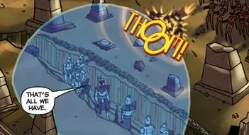 Confrontés à des milliers de Droïdes de Combat B1 de la Fédération du Commerce, appuyés par des véhicules lourds montés sur répulseurs, les soldats créés à partir du modèle génétique du défunt Mandalorien Jango Fett ne purent que se réfugier à l’intérieur d’une tranchée située aux abords d’une ville abandonnée et protégée par un simple bouclier de défense. Pour ne pas arranger les choses, un orage magnétique empêchait les appels de détresse de passer. Lorsque le dôme d’énergie finit par se volatiliser à cause d’un bombardement incessant, un Commandant membre des fameux Commandos de Reconnaissance Avancée ordonna à ses hommes de riposter courageusement.