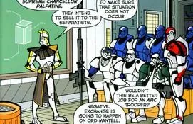 __Sarge (RC-1013) à un officier ARC pendant le briefing.
