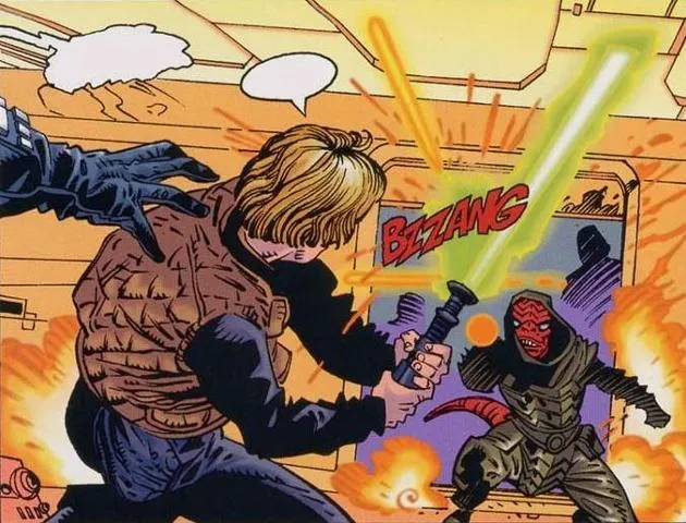 Quand le moment fut opportun, Luke décida de jouer un tour à son gardien. Utilisant la Force, il projeta sa volonté dans l'esprit de ce dernier et lui ordonna d'ouvrir la porte. S'exécutant, Luke se faufila à l'extérieur et plaça le garde à l'intérieur. Puis, allumant son sabrelaser pour s'éclairer dans les couloirs sombres de la base de Kothlis, il se retrouva nez-à-nez avec une Barabel, puis plusieurs autres. Alors qu'il livrait combat, le mur derrière ses ennemis explosa, révélant la silhouette d'un homme qu'il connaissait bien : l'ancien Baron-Administrateur de la Cité des Nuages de Bespin, Lando Calrissian.