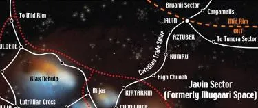 Secteur situé au nord du Greater Javin et traversé par la Route Commerciale Corellienne, il était majoritairement composé de Mugaari, lesquels étaient natifs de Mugaar. Javin constituait le premier arrêt et la planète-capitale sectorielle. Autrefois habitée majoritairement par des Mugaari, les colons Humains finirent par devenir majoritaires, permettant ainsi à l'Empire Galactique d'y établir un monde-forteresse, d'ailleurs abandonné à la veille de la Campagne contre les Seigneurs de la guerre. Toujours sur la voie hyperspatiale, venait ensuite Aztubek, un monde riche sur lequel les usines de Javin avaient été délocalisées.. Kumru venait ensuite : puissant monde industriel, où la triade des populations - Mugaari, Lutrilliens et Nothoiin - vivait. Enfin, High Chunah était une ancienne colonie mugaari qui avait fait fortune dans la production de speeders. Notons l'existence d'une voie hyperspatiale parallèle à la Route Commerciale Corellienne, permettant de rejoindre le Secteur Yarith - et Lutrillia en particulier - depuis Lorta, dans le Secteur Gendius.