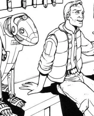 Toute personne qui aurait la mauvaise idée d’insulter un droïde en présence d’Exovar devrait se préparer à un brusque retour à la réalité – la plupart des gens considéraient déjà les verbeuses histoires de Luskin difficiles à digérer, alors l’imaginer faire la morale sur un sujet qui lui tient à cœur était suffisamment dissuasif. A ce tableau venait s’ajouter la perspective de voir Spanner venir planter les crocs métalliques de sa puissance mâchoire mécanique dans le fond de leur pantalon. Autant dire que les individus haïssant les droïdes n’étaient pas spécialement les bienvenus dans l’Emporium d’Exovar.