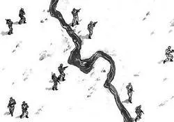 - la File : il s'agit de la méthode de base pour avancer en terrain découvert, tout en sachant que cette dernière nécessite tout de même l'écart de quelques pas de chaque soldat pour couvrir tous les flancs. Lorsque le combat est proche, les soldats doivent s'écarter d'au moins 10 mètres respectivement.