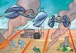 En réponse, la Sœur de la Nuit Asajj Ventress fut envoyée sur place à la tête de troupes automatisées de la Confédération des Systèmes Indépendants afin de prendre par la force les matières premières tant convoitées. Face à l'intervention inattendue de la Dark Acolyte du Seigneur Noir de la Sith Darth Tyranus, l'ancien élève du Haut Général Jedi Obi-Wan Kenobi jugea préférable de réunir ses hommes et les natifs de la colonie en danger sous un bouclier déflecteur à proximité des mines. Malgré ses efforts et le bombardement intensif des CAB à sa disposition, l'Adepte du Côté Obscur de Dathomir ne parvint pas à faire tomber le dôme d'énergie. Lorsqu'un droïde semblable à 4A-7 signala l'arrivée d'un Star Destroyer Venator, elle préféra battre en retraite.