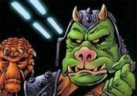 Personnage LégendePirate gamorreen faisant partie de la bande de Sol Mon, Tront était connu pour sa haine farouche envers les droïdes qu'il ne manquait pas de pulvériser dès que l'un d'entre eux croisait son chemin.